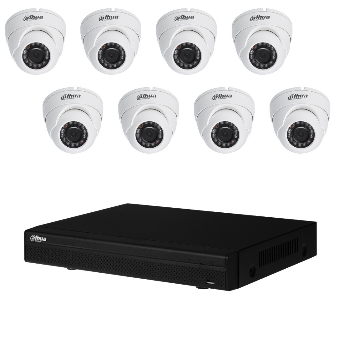 Ensemble complet de vidéosurveillance comprenant huit caméras et un enregistreur.